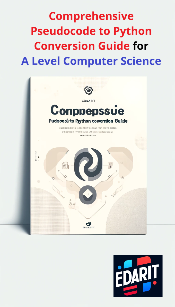 Unlock the power of programming with the "Comprehensive Pseudocode to Python Conversion Guide for A Level Computer Science"! This expertly crafted guide is designed to bridge the gap between pseudocode and Python, making it an invaluable resource for A Level students, educators, and aspiring programmers alike.